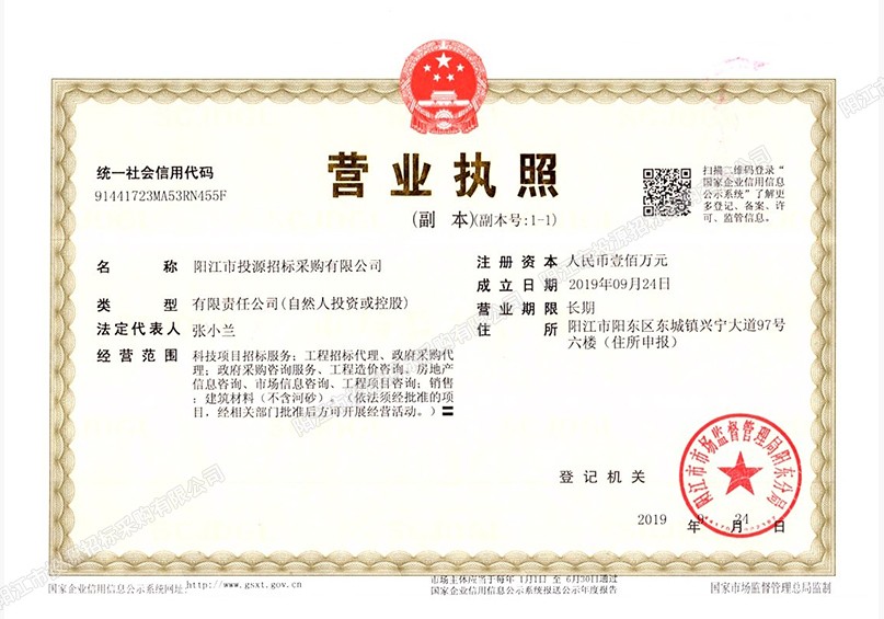 陽(yáng)江市投源招標(biāo)采購(gòu)有限公司是經(jīng)國(guó)家和陽(yáng)江市政府有關(guān)部門(mén)批準(zhǔn),于2019年9月成立,依法從事招標(biāo)代理業(yè)務(wù)的專(zhuān)業(yè)機(jī)構(gòu)。被國(guó)家和省市行政主管部門(mén)授予的專(zhuān)業(yè)資質(zhì)有:中國(guó)政府采購(gòu)代理機(jī)構(gòu)及廣東省政府采購(gòu)代理機(jī)構(gòu)資格、國(guó)際招標(biāo)、建設(shè)工程招標(biāo)代理資格、藥品和醫(yī)療器械招標(biāo)代理資格等。